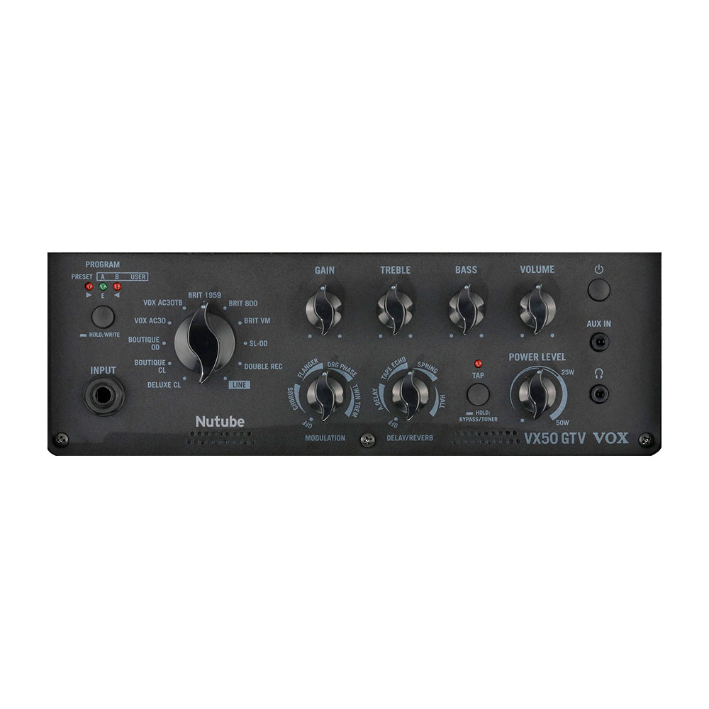 מגבר ווקס vx50 gt הוא מגבר קומבו שמציע עולם חדש של אפשרויות כמגבר להופעות והקלטות. המגבר מיוצר בטכנולוגיית Nutube שמהווה את שיא הקידמה של מגברי הגיטרה, ומציע מגוון סאונדים ריאליסטים באיכות הגבוהה ביותר. כולל 11 דגימות מגברים, 8 אפקטים ורסטיליים, חיבור USB ועוד מגוון רחב של אפשרויות. לנגינה יצירתית בכל מקום ובכל זמן, ובאיכות צליל שאין שניה לה.