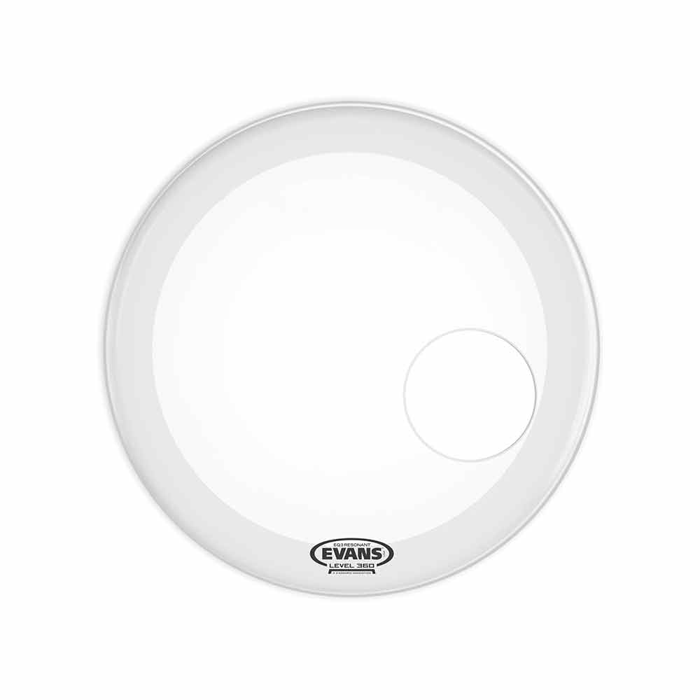 עור חיצוני לתוף בס מסדרת EQ3 Reso של חברת אוונס Evans, בקוטר 18 אינץ’. יריעת 7.5 מילימטר מצופה, לסאונד חזק ולהדהוד מקסימלי, בעלת פתח 5 אינץ’ למיקרופון. עור מועדף על ידי מתופפים וטכנאי סאונד.
