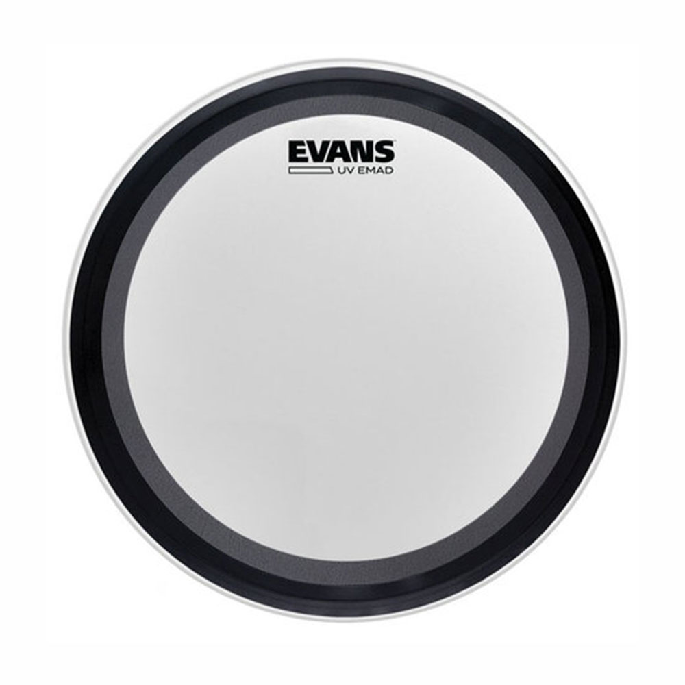 עור פנימי לתוף בס מסדרת UV EMAD של חברת אוונס Evans, בקוטר 20 אינץ’. העור כולל יריעת 10 מילימטר, לאיזון בין ה’Attack’, העוצמה והבלטת התדרים הנמוכים, מתאים במיוחד לנגינת רוק או גוספל. טבעת חיצונית בטכנולוגיית EMAD הייחודית של החברה, מאפשרת התאמה אישית של הסאונד, מבלי להסיר את העור, נוסף על טבעת פנימית להפחתת אוברטונים. ציפוי ה-UV מבטיח את העמידות הגבוהה ביותר בתעשייה.