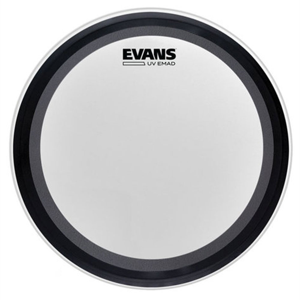 עור פנימי לתוף בס מסדרת UV EMAD של חברת אוונס Evans, בקוטר 22 אינץ’. העור כולל יריעת 10 מילימטר, לאיזון בין ה’Attack’, העוצמה והעמקת הנמוכים. טבעת חיצונית בטכנולוגיית EMAD הייחודית של החברה, מאפשרת שליטה והתאמה אישית של הסאונד, מבלי להסיר את העור, נוסף על טבעת פנימית להחלשת אוברטונים. פטנט ציפוי ה-UV של החברה מספק עמידות יוצאת דופן.